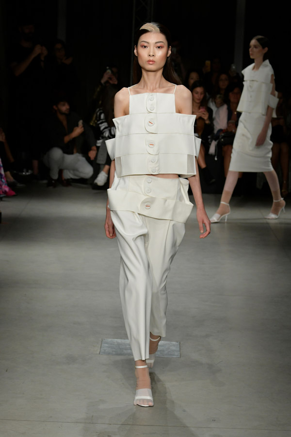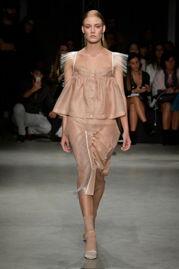 Swarovski, un Brand Partner che mi accompagna da sempre. Nella collezione FW 2018-2019, hanno sfilato in passerella 6 outfit con micro cristalli gioiello riportati sull’abito e con macro decorazioni che raccontano l’abbraccio, il tema della collezione per il prossimo inverno.