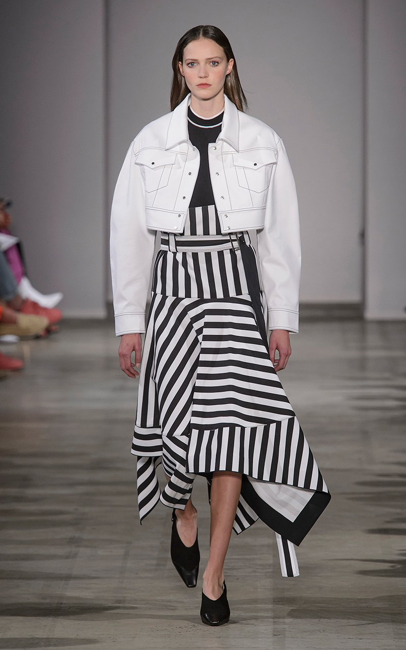Dopo questa antologica digressione sul significato dei colori, vediamone l’ambito di applicazione…il Black&white è da sempre ultra femminile ed estremamente elegante…per la stagione PE 2018, lo vediamo fuso in righe e contrasti sulle passerelle di Aquilano Raimondi. Mi piace perdermi nelle righe ottiche della gonna a vita alta che mi richiamano alla mente le righe di una zebra… quanta perfezione nascosta nella natura, eh?