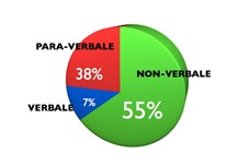- per come ci si pone >> per il 55% cioè tutto quello che comunichiamo attraverso la nostra postura, per come ci poniamo nello spazio, per i nostri movimenti e per gli aspetti estetici ovvero il modo di vestire o di prenderci cura di noi stessi