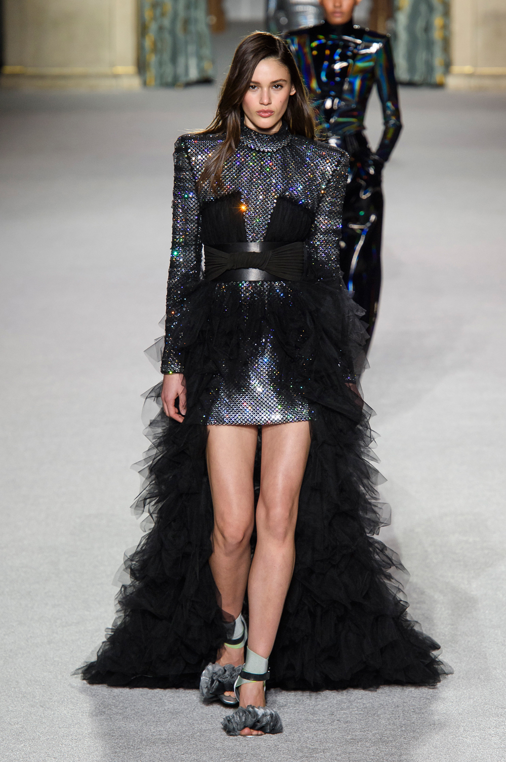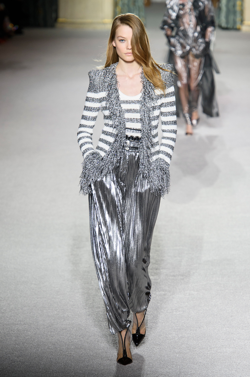 Ho notato uno stilista in particolare, uno che ha messo insieme tutto ciò che può essere luce con cristalli e silver…parlo di Balmain. Le sue creazioni sono la sintesi di bagliori in movimento, davvero molto belle!